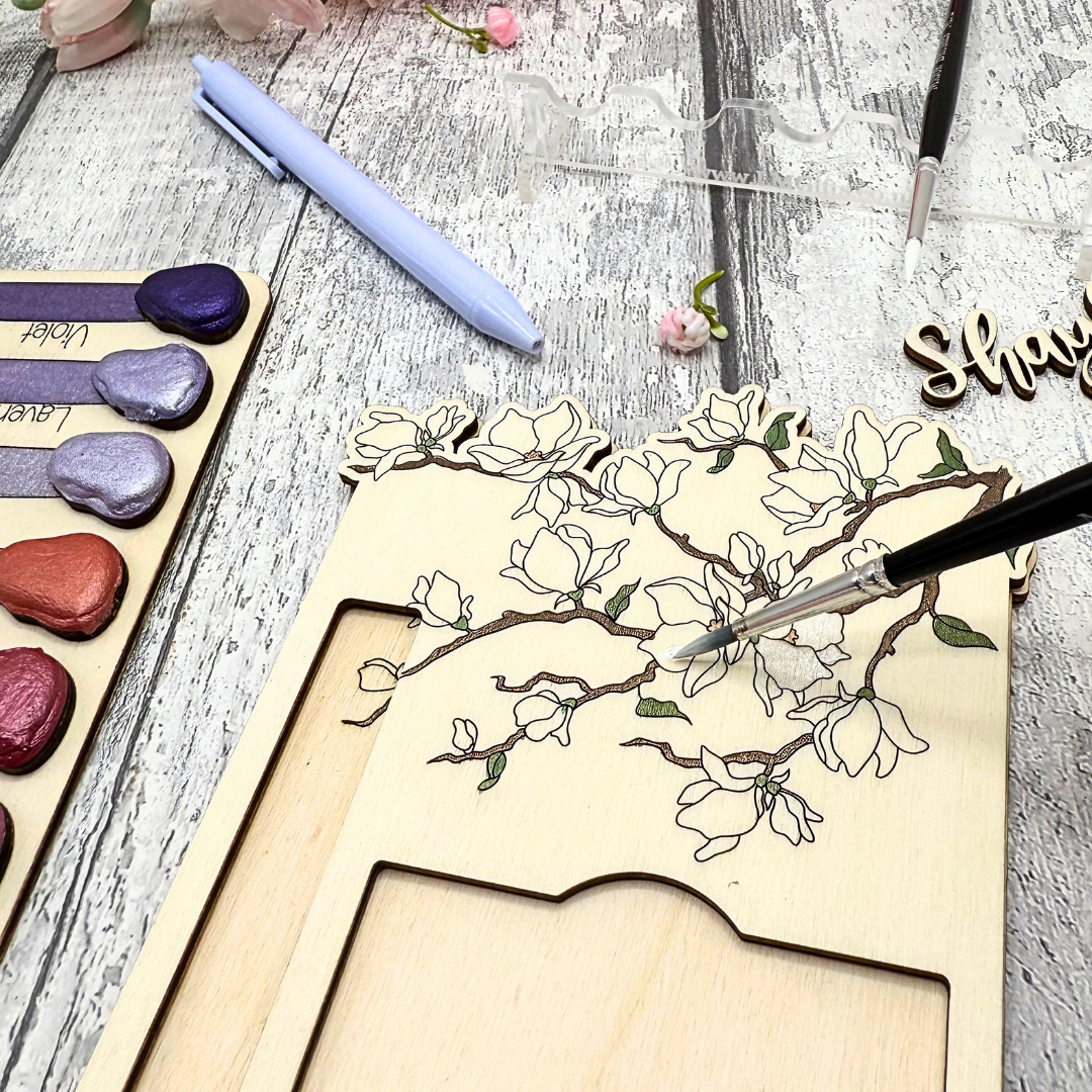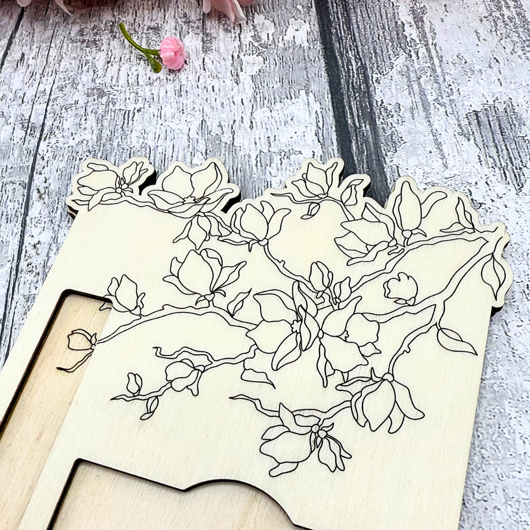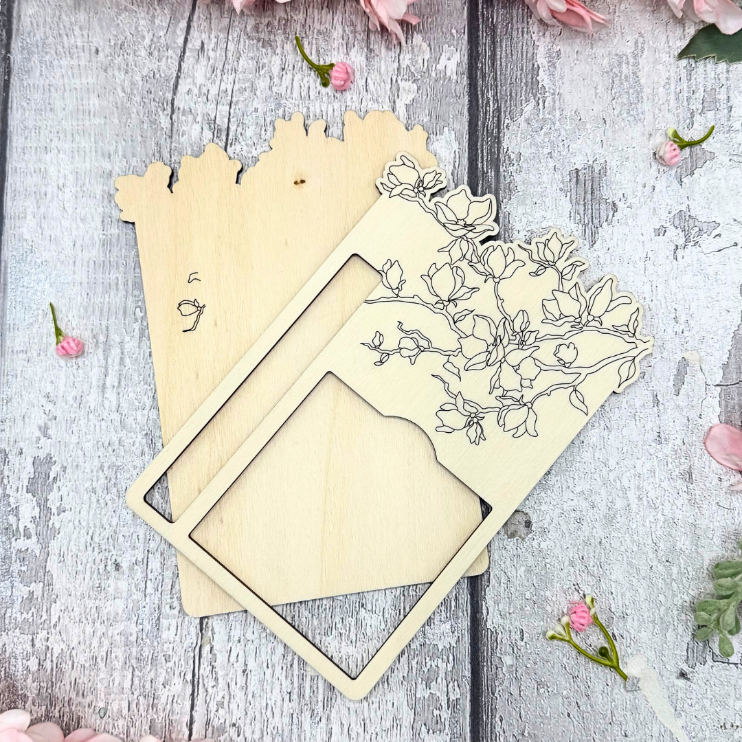 Made from laser-cut wood, this beautiful desk piece features an elegant cherry blossom design, ready to be painted and personalised in your own style. Each holder comes complete with a sticky note pad and pencil, making it as practical as it is charming.